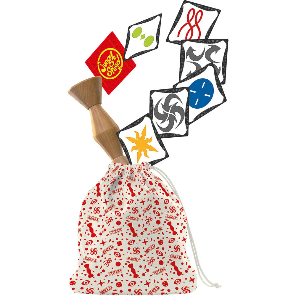 - In de verpakking zitten 70 kaarten, een houten totem, een katoenen zakje en spelregels.