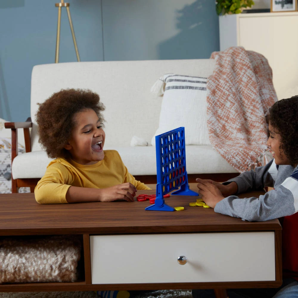 - Zorg dat je als eerste speler vier schijfjes op één rij hebt met het superleuke 4 op ’n rij!